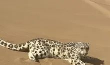 惊喜又揪心!3月21日,新疆库木塔格沙漠迎来一位“稀客”——一只国家一级保护动物雪豹,一度躲到游客车下避险,网友暖心为其 ...